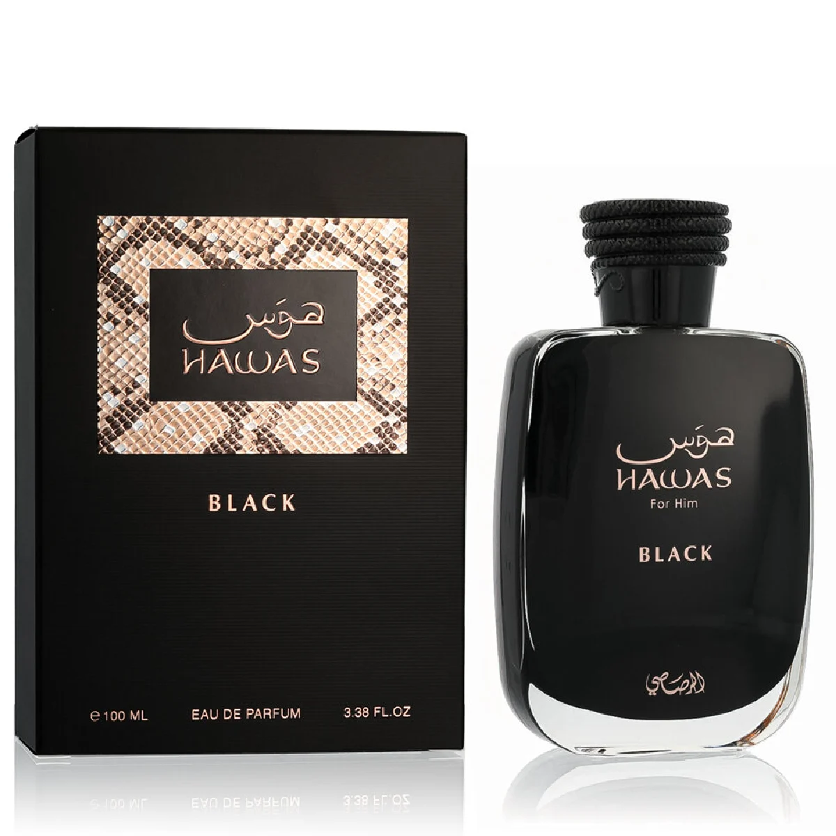Rasasi Hawas Black Eau De Parfum Spray 100ml combines citrus, amber, and musk for a bold, long-lasting scent that embodies elegance, confidence, and modern sophistication.